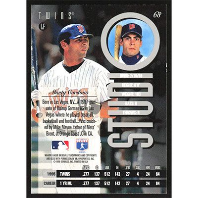 This is a 1996 Studio Marty Cordova baseball card. The card is #68 and pictures show condition.