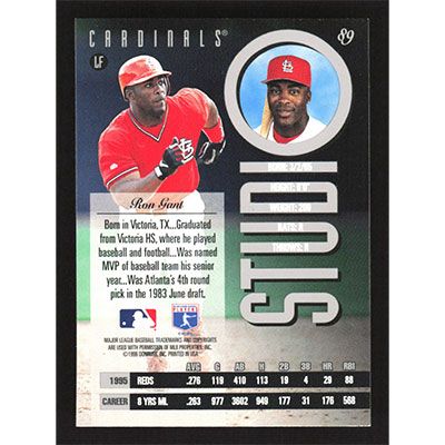 This is a 1996 Studio Ron Gant baseball card. The card is #89 and pictures show condition.