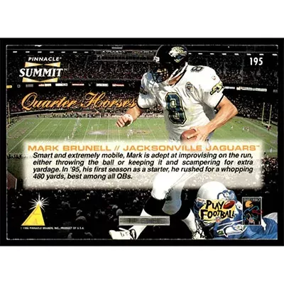 This is a 1996 Summit Premium Stock Mark Brunell Quarter Horses football card. The card is #195 and pictures show condition.