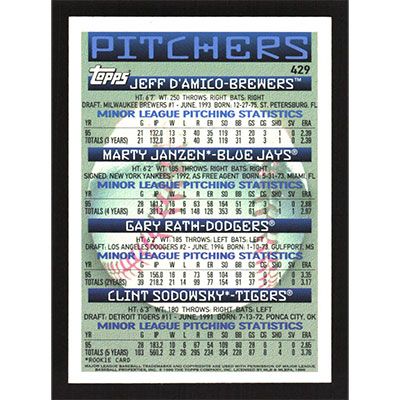 This is a 1996 Topps Jeff D'Amico, Marty Janzen, Gary Rath and Clint Sodowsky Propects baseball card. The card is #429 and pictures show condition.