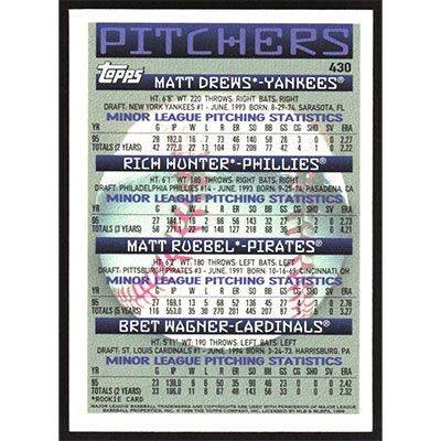 This is a 1996 Topps Matt Drews, Rich Hunter, Matt Ruebel and Bret Wagner Prospects baseball card. The card is #430 and pictures show condition.