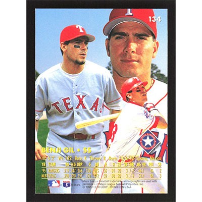 This is a 1996 Ultra Benji Gil baseball card. The card is #134 and pictures show condition.