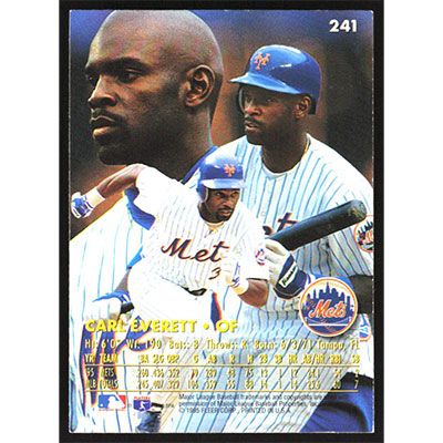 This is a 1996 Ultra Carl Everett baseball card. The card is #241 and pictures show condition.