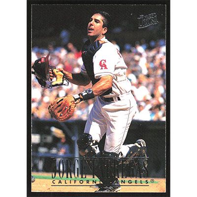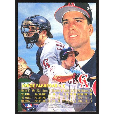 This is a 1996 Ultra Jorge Fabregas baseball card. The card is #29 and pictures show condition.