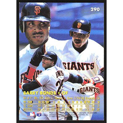 This is a 1996 Ultra Barry Bonds baseball card. The card is #290 and pictures show condition.