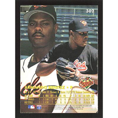 This is a 1996 Ultra Armando Benitez baseball card. The card is #302 and pictures show condition.
