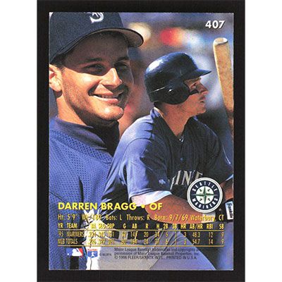 This is a 1996 Ultra Darren Bragg baseball card. The card is #407 and pictures show condition.