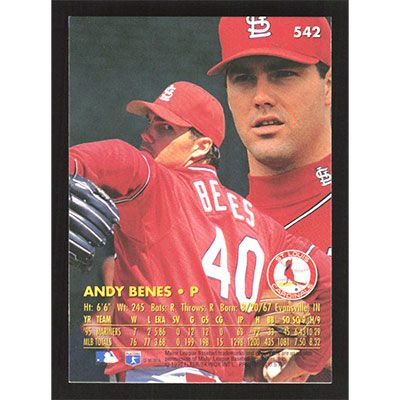 This is a 1996 Ultra Andy Benes baseball card. The card is #542 and pictures show condition.