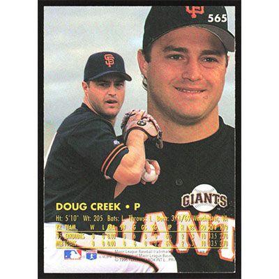This is a 1996 Ultra Doug Creek baseball card. The card is #565 and pictures show condition.