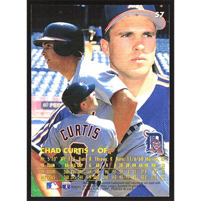 This is a 1996 Ultra Chad Curtis baseball card. The card is #57 and pictures show condition.