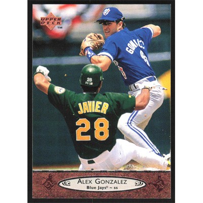 This is a 1996 Upper Deck Alex Gonzalez baseball card. The card is #214 and pictures show condition.