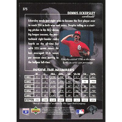 This is a 1996 Upper Deck Dennis Eckersley Best of a Generation baseball card. The card is #375 and pictures show condition. Team(s): St. Louis Cardinals