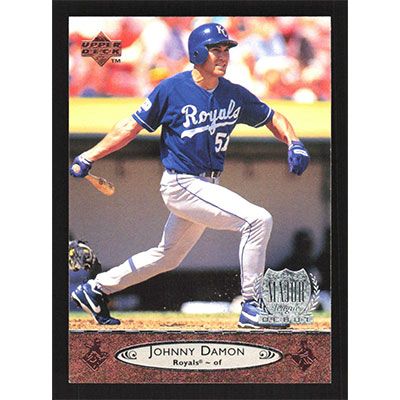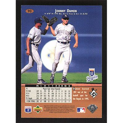 This is a 1996 Upper Deck Johnny Damon baseball card. The card is #90 and pictures show condition.