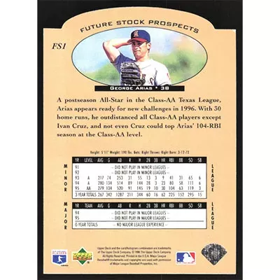 This is a 1996 Upper Deck Future Stock Prospects George Arias baseball card. The card is #FS1 and pictures show condition.
