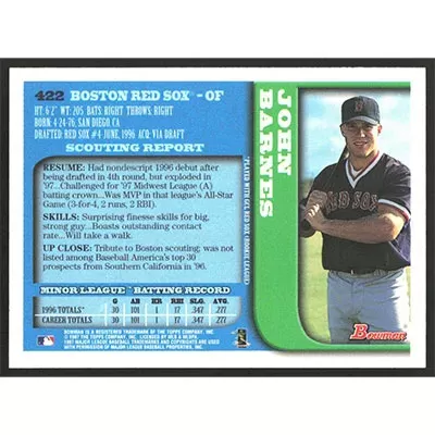 This is a 1997 Bowman John Barnes baseball card. The card is #422 and pictures show condition.