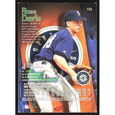 This is a 1997 Circa Russ Davis baseball card. The card is #159 and pictures show condition.