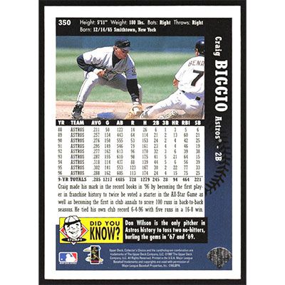 This is a 1997 Collector's Choice Craig Biggio baseball card. The card is #350 and pictures show condition.
