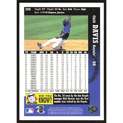 This is a 1997 Collector's Choice Chili Davis baseball card. The card is #358 and pictures show condition.