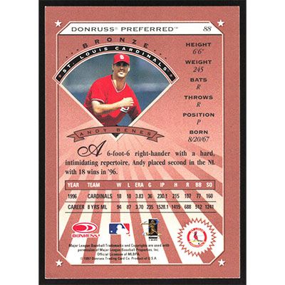 This is a 1997 Donruss Preferred Andy Benes Bronze baseball card. The card is #88 and pictures show condition.
