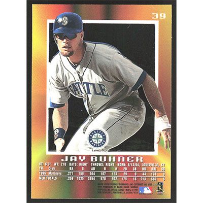 This is a 1997 E-X2000 Jay Buhner baseball card. The card is #39 and pictures show condition.