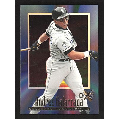 This is a 1997 E-X2000 Andres Galarraga baseball card. The card is #69 and pictures show condition.