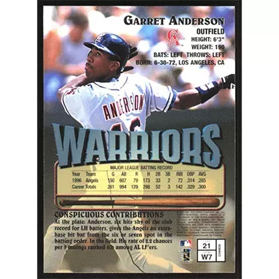 This is a 1997 Finest Garret Anderson baseball card. The card is #21 and pictures show condition.