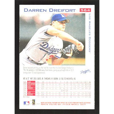 This is a 1997 Fleer Darren Dreifort baseball card. The card is #564 and pictures show condition.