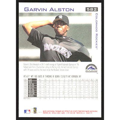This is a 1997 Fleer Garvin Alston baseball card. The card is #582 and pictures show condition.