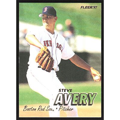 This is a 1997 Fleer Steve Avery baseball card. The card is #637 and pictures show condition.