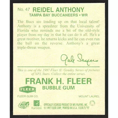 This is a 1997 Fleer Goudey II Reidel Anthony football card. The card is #47 and pictures show condition.