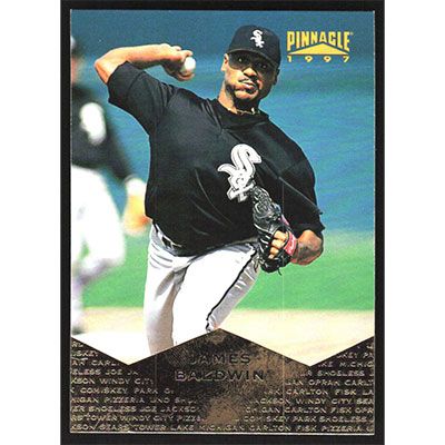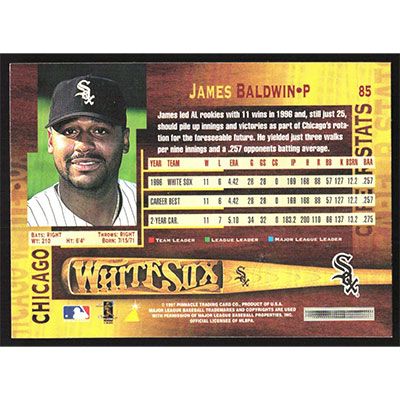 This is a 1997 Pinnacle James Baldwin baseball card. The card is #85 and pictures show condition.