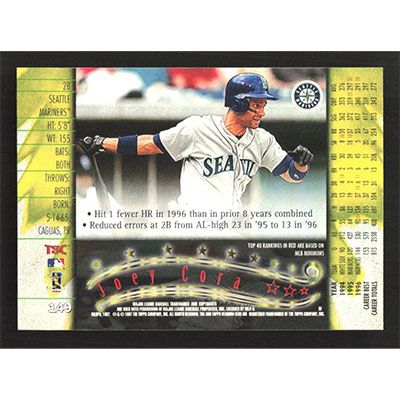 This is a 1997 Stadium Club Joey Cora baseball card. The card is #149 and pictures show condition.