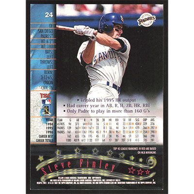 This is a 1997 Stadium Club Steve Finley baseball card. The card is #24 and pictures show condition.