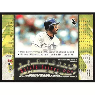 This is a 1997 Stadium Club Harold Baines baseball card. The card is #70 and pictures show condition.