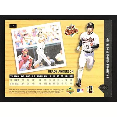 This is a 1997 UD3 Brady Anderson baseball card. The card is #2 and pictures show condition.
