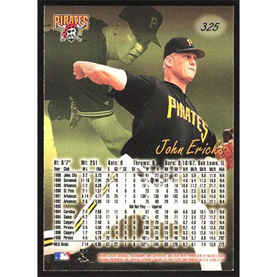 This is a 1997 Ultra John Ericks baseball card. The card is #325 and pictures show condition.