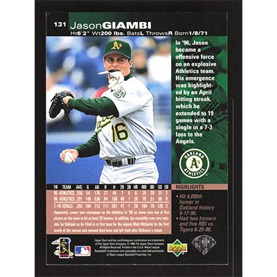 This is a 1997 Upper Deck Jason Giambi baseball card. The card is #131 and pictures show condition.