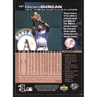 This is a 1997 Upper Deck Mariano Duncan baseball card. The card is #437 and pictures show condition.