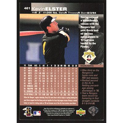 This is a 1997 Upper Deck Kevin Elster baseball card. The card is #461 and pictures show condition.
