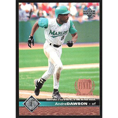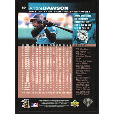 This is a 1997 Upper Deck Andre Dawson baseball card. The card is #80 and pictures show condition.