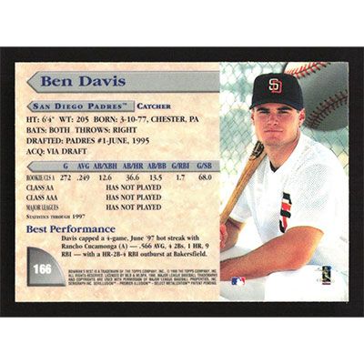 This is a 1998 Bowman's Best Ben Davis baseball card. The card is #166 and pictures show condition.
