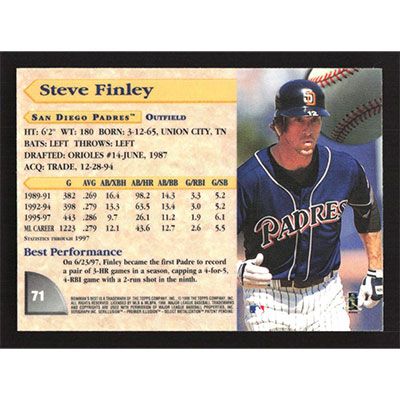 This is a 1998 Bowman's Best Steve Finley baseball card. The card is #71 and pictures show condition.
