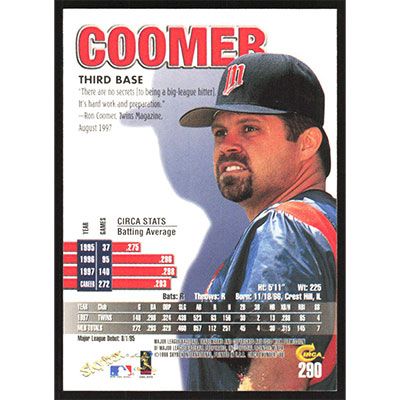 This is a 1998 Circa Thunder Ron Coomer baseball card. The card is #290 and pictures show condition.