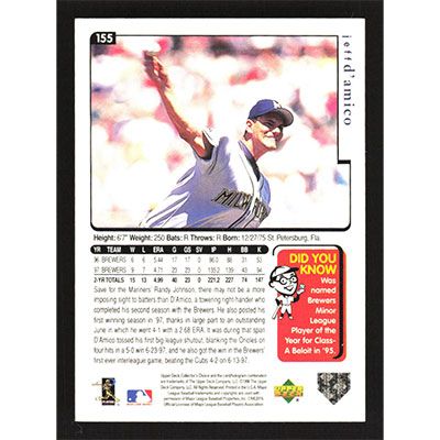 This is a 1998 Collector's Choice Jeff D'Amico baseball card. The card is #155 and pictures show condition.