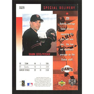 This is a 1998 Collector's Choice StarQuest Shawn Estes baseball card. The card is #SQ29 and pictures show condition.