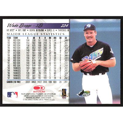 This is a 1998 Donruss Wade Boggs baseball card. The card is #234 and pictures show condition.