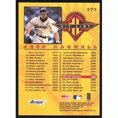 This is a 1998 Donruss Jeff Bagwell Hit List baseball card. The card is #373 and pictures show condition.