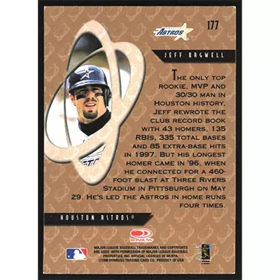This is a 1998 Donruss Preferred Jeff Bagwell Preferred Power Grandstand baseball card. The card is #177 and pictures show condition. Team(s): Houston Astros