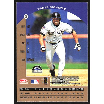 This is a 1998 Donruss Preferred Dante Bichette Grandstand baseball card. The card is #56 and pictures show condition.