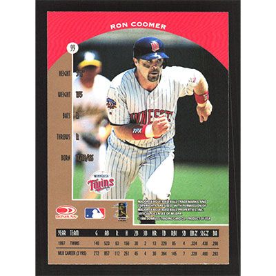 This is a 1998 Donruss Preferred Ron Coomer Grandstand baseball card. The card is #99 and pictures show condition.